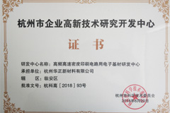 華正新材憑著卓越的創(chuàng)新能力得到了社會和各機構的認可。先后通過了ISO9001、ISO/TS16949質量管理體系和ISO14001環(huán)境管理體系認證,GBT 29490企業(yè)知識產權管理體系。主導研發(fā)生產的產品均已通過中國CQC、美國UL、日本JET和SGS認證。先后榮獲中國馳名商標、國家高新技術企業(yè)、中國印制電路行業(yè)優(yōu)秀民族品牌、浙江省企業(yè)技術中心、浙江省企業(yè)研發(fā)中心、浙江省5G產業(yè)聯(lián)盟(唯一材料成員單位) ,浙江省企業(yè)研究院,浙江省高新技術企業(yè)研究開發(fā)中心,工信部國家級綠色工廠,浙江省專利示范企業(yè), 浙江省級博士后工作站,中國馳名商標,中國電子電路行業(yè)優(yōu)秀民族品牌企業(yè)等稱號,并于2020年獲得“國家企業(yè)技術中心”榮譽稱號。